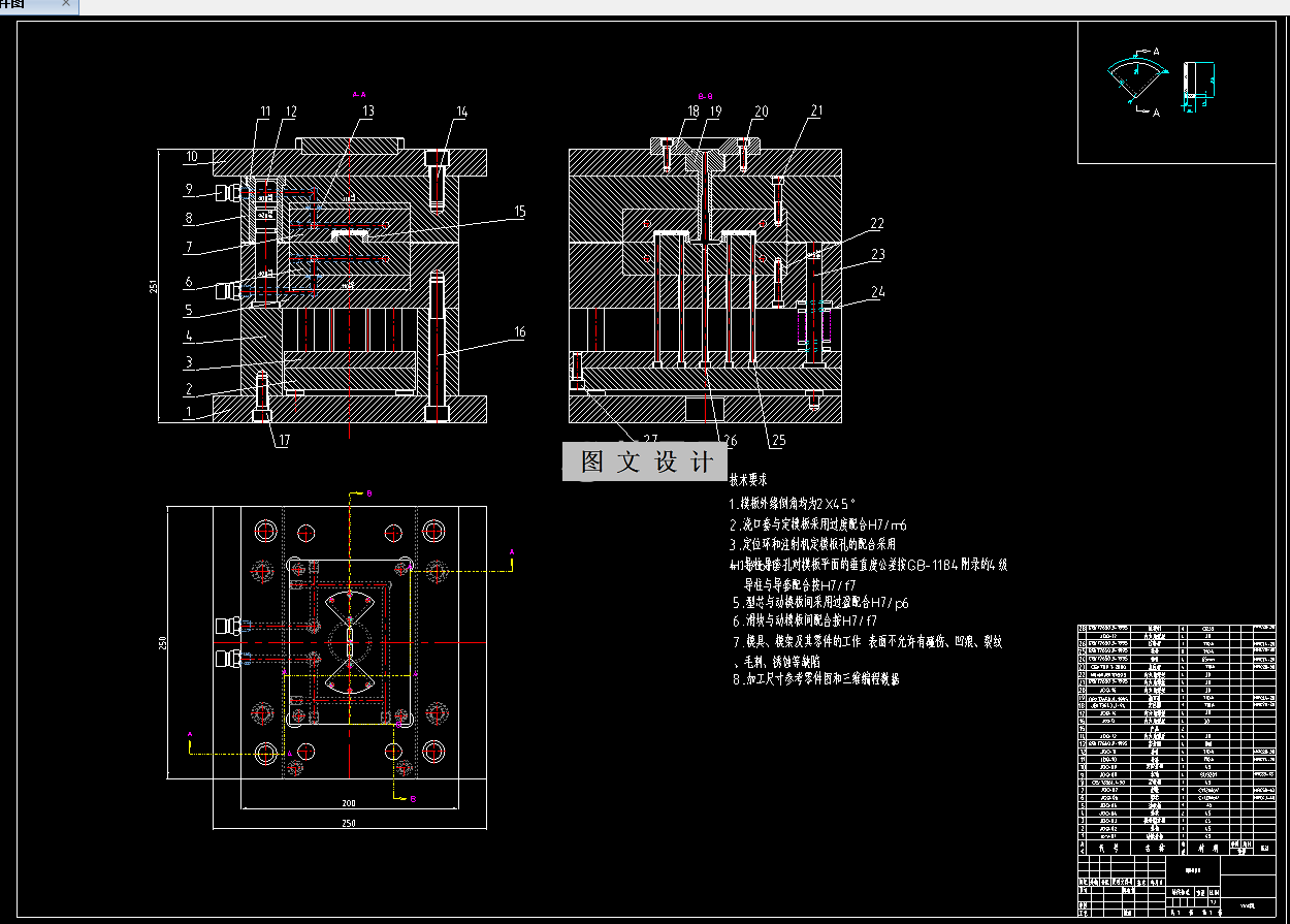 从防撞护角的成型结构特征开始、到对分型面分析及位置的选择、模具浇注系统设计、型芯凹模结构设计和尺寸计算,脱模推出机构、冷却系统、导向机构的设计进而保证了设计的合理性及正规性。如此设计出的注射模结构才能确保模具工作运行可靠,按照任务书中全自动连续生产要求,确定采用侧浇口,型腔数目一模两腔