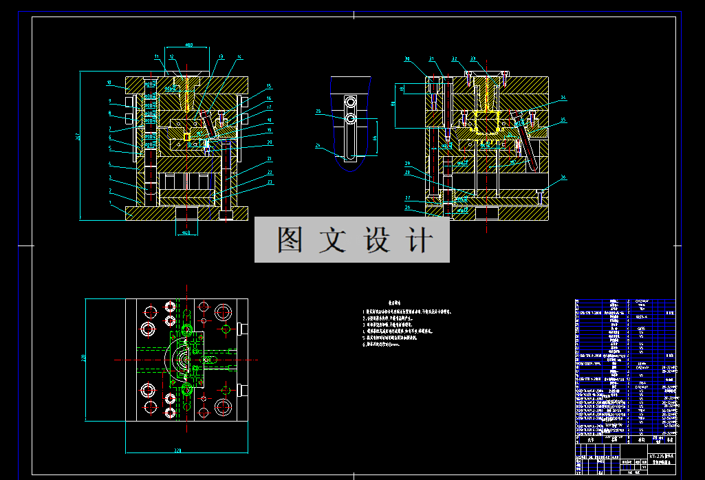 本课题通过对桥型接线排零件的结构分析,设计出了一套成型模具。针对产品的结构工艺性和具体模具结构,对模具的浇注系统、成型部分的结构、侧抽芯系统、脱模系统、冷却系统、注塑机的选择及有关参数的校核进行了详细的分析与设计,同时还对一重要部件编制了加工工艺。该模具采用双分型面、双点浇口、一模一腔的结构,通过对整个设计过程的反复校核,表明此次设计的模具能够达到塑件的强度要求。此课题重点对制品脱出过程进行了分析,推导出动、定模之间的开模速度及距离与制件脱落时间之间的关系,采用顶杆脱模,流道凝料由限位螺钉、拉料板、脱料板等通过开模力实现自动脱落,以实现自动化提高产量。通过最终校核表明该模具能达到质量和加工工艺的要求。