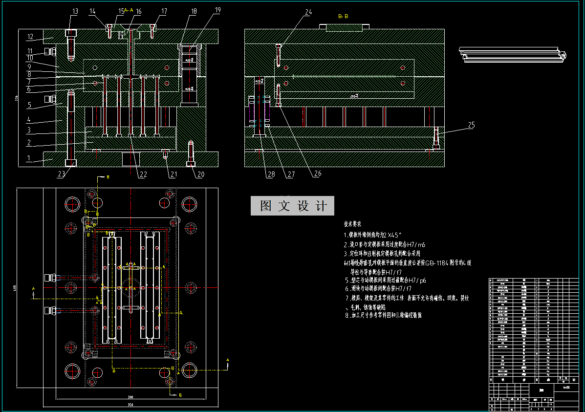 在本次模具设计中,绘制出塑料条三维图,通过分析它结构复杂程度以及尺寸精度要求来设计合理的模具方案,接着对产品的塑料原材料进行了选择并做出分析,初选了注塑机型号。由于产品有装配要求,尺寸精度要求比较高,型腔数目决定采用一模两腔结构,型腔排布采用一字型排列方式,为了保证产品的成型质量缩短冷却成型时间为模具设计了合适的冷却系统,最后对注塑机几个主要参数进行了校核