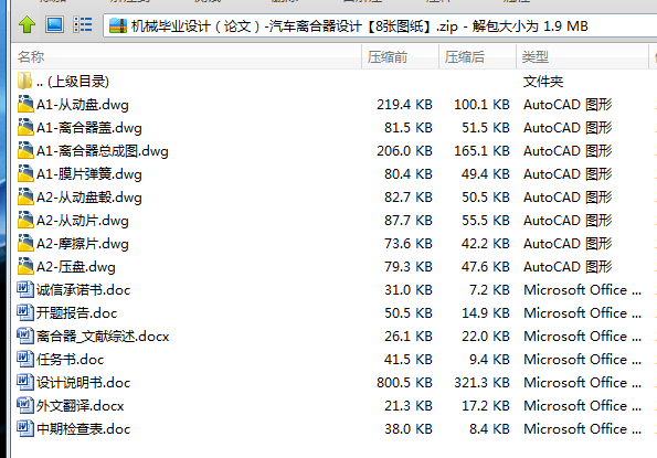 本设计为汽车膜片弹簧离合器,根据汽车的车型以及技术要求,合理拟定设计方案,完成离合器各部件以及总成设计。设计过程中在满足技术要求的前提下,尽量做到各零部件的合理配合、这样才能从整体上把握离合器的性能和结构, 以此来保证离合器能够传递发动机的最大转矩并且能够完美分离和散热以减少齿轮间的冲击。