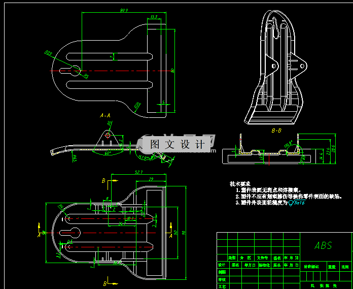 本文主要介绍了夹持式台灯底座零件的注射模设计,其间要参考大量与塑料成型相关的资料和翻阅各种模具设计手册,并通过计算以确定模具的具体模具制造技术迅速发展,已成为现代制造技术的重要组成部分。根据成型工艺要求,在原有塑料件的基础上介绍了其注塑成型模具的结构,阐述了模具设计要点及工作过程。首先要从塑料生产工艺上对所要设计的产品进行工艺的分析与计算,然后在分析计算的基础上并参看相关的资料确定成型工艺方案,再在此基础上进入模具总装配图的结构设计。其材料为ABS。根据ABS塑料的工艺特性和产品的使用要求,分析了底盖的结构特点和成型工艺。本设计采用CAD技术进行模具装配图及零件图的绘制。对模具进行了成型零部件、浇注系统、侧向抽芯机构、推出脱模机构及冷却系统的设计分析。最后,完成模具总装图设计及主要零件图的绘制,从而确保模具结构的可靠性、合理性和实用性。