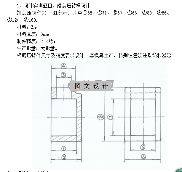 本次设计是端盖压铸模设计。端盖为长方体制件,考虑到安装座的精度产量等因素,采用一模两腔结构。由于端盖有侧凹,需设计测抽芯机构成型,采用中心浇口不易充满型腔,所以采用外侧浇口。模具采用镶拼式结构,便于型芯型腔磨损后的更换。利用导柱与导套的配合,使动模可以准确地合在定模上。采用推杆推出,并设置冷却水道以加速冷却模具。 采用UG建模实现端盖的三维建模、模具的设计及建模,建成三维模具后导出模具的装配图及零件图。