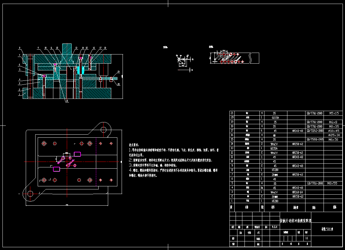 本设计为材料为H62黄铜片的冷冲压连续冲裁模的设计,,进行工艺分析,的工艺方案,模具结构的选择,工艺设计的计算后,选择设计排样,并画出排样图,力中心计算公差,,选择模座、垫板等零部件,选择合适的定位零件、尺寸合适的螺钉、销钉等标准紧固件,,然后并通过总装图,最终计。