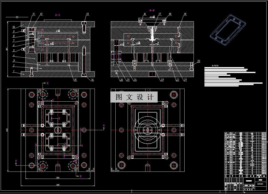 本文研究的是热水器仪表盖的注塑成型模具设计。在本次模具设计中首先根据指导老师所提供的实物,绘制出热水器仪表盖三维图,通过分析它结构复杂程度以及尺寸精度要求来设计合理的模具方案,接着对产品的塑料原材料进行了选择并做出分析,初选了注塑机型号为XS-ZY-250。由于产品有装配要求,尺寸精度要求比较高,型腔数目决定采用一模两腔结构,型腔排布采用一字型排列方式,本次设计分型面位置选在了沿着产品底面形成的最大轮廓面处,由于产品表面要求不高,所以选择了侧浇口浇口类型,本次设计的脱模机构选择了推杆脱模方式。由于产品上存在四处倒扣结构,还需要为模具产品成型设计抽芯机构,为了保证产品的成型质量缩短冷却成型时间为模具设计了合适的冷却系统,最后对注塑机几个主要参数进行了校核。