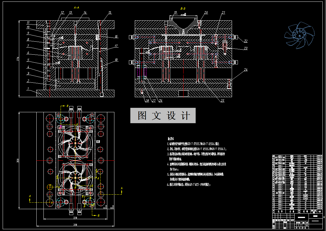 本文研究的是CPU散热风扇的注塑成型模具相关设计。在本次模具设计中我们首先准备了CPU散热风扇零件图,绘制出了CPU散热风扇产品三维图,通过分析它的外部结构形状结构和尺寸大小以及精度来拟定合理的模具设计方案,并对产品的塑料原材料进行了选择并作出类性能分析,产品体积通过三维软件分析获得,并初选了注塑机型号为HTF86J/TJ。本次设计分型面位置选在了产品底面以及7个扇叶的底面组成的最大轮廓面处,型腔数目决定采用一模两腔结构,型腔排布采用直线排布,在浇口类型上选择了点浇口类型,在制品的脱模机构上我们采用推杆推出CPU散热风扇的方式来推出产品。最后经过分析,认为此次的塑料模具设计还需要设计一套模具冷却系统,这样能够提高产品的成型质量。最后对注塑机主要参数进行了校核。