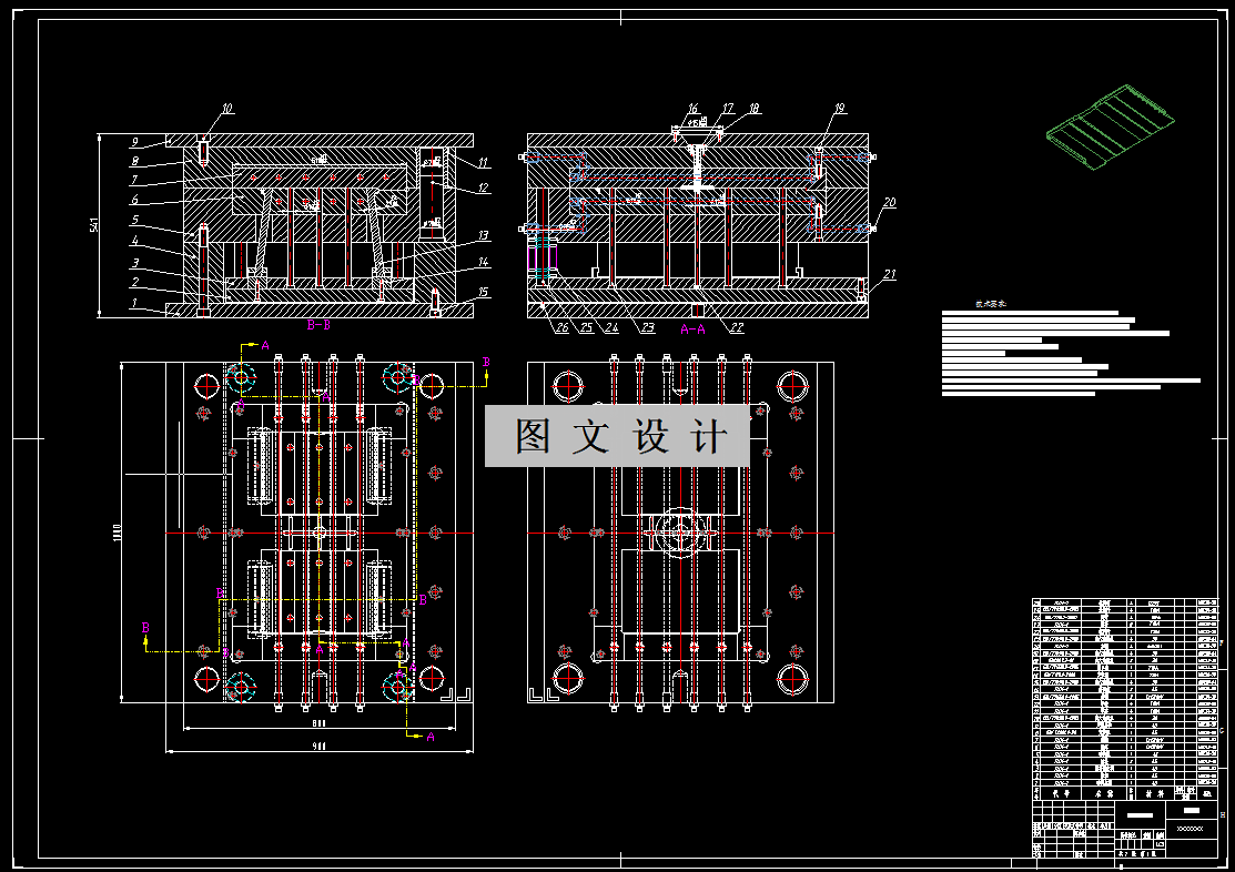 本次设计主要也是研究模具设计,本文主要内容研究的是打印机托盘的注塑成型模具设计。在本次模具设计中首先绘制出打印机托盘三维图并导出了产品零件图,通过分析它结构复杂以及精度来设计合理的模具方案,接着对产品的塑料原材料进行了选择并做出分析,按照指导老师的建议,型腔数目决定采用一模两腔结构,型腔排布采用一字型排列方式,本次设计分型面位置是在产品底面构建的阶梯分型面,由于产品表面要求不高,所以选择了侧浇口类型,根据实物上表面痕迹,在每个打印机托盘设置了三个侧浇口,注塑机选用HTF450J/TJ注塑机,所选模架型号为CI型框架。本次设计的脱模机构选择了推杆推出方式。然后为本次塑料模具设计设计一套模具冷却系统。最后对注塑机主要参数进行了校核。