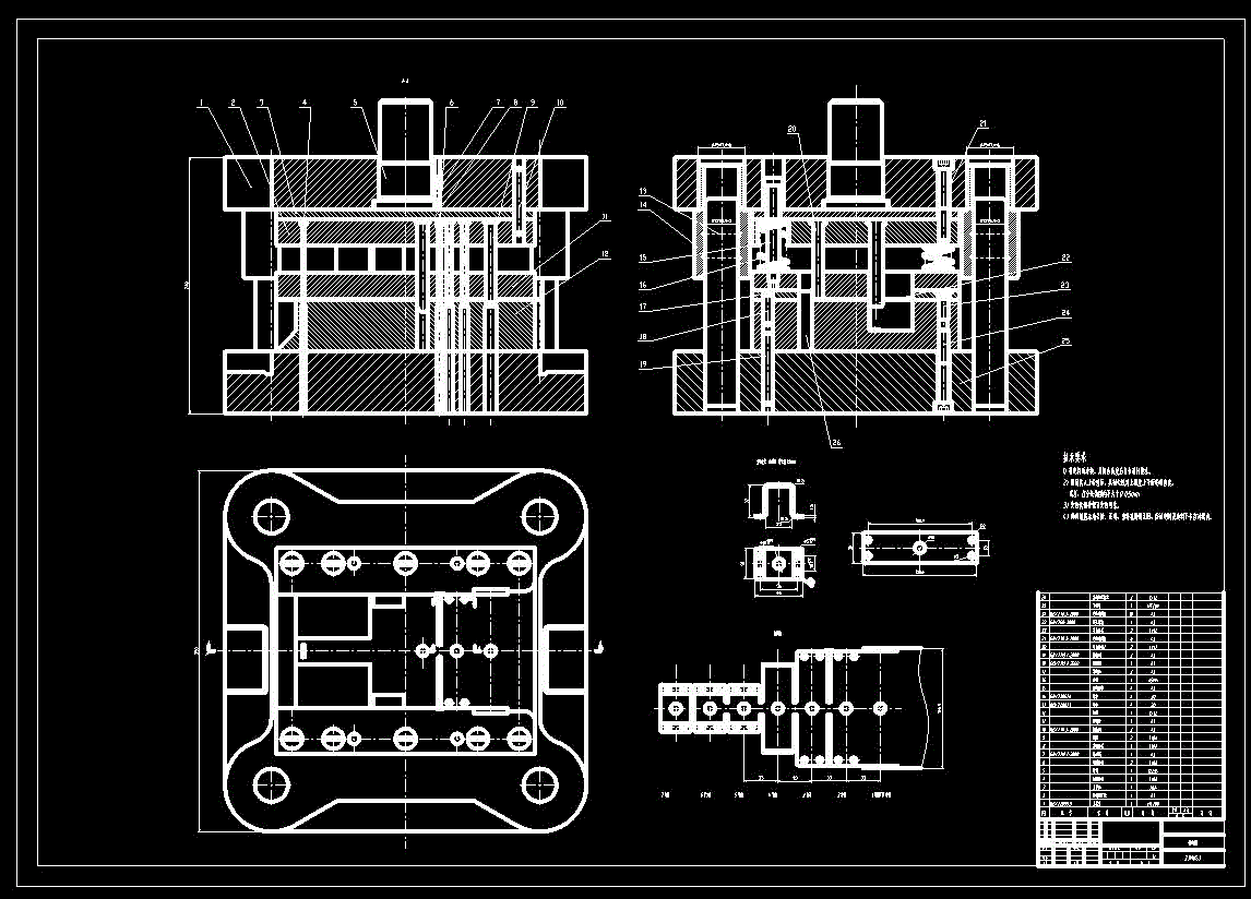 托架冲压模具设计本设计是对托架进行冲压模具的设计。此设计说明书中简要概述了冲压模具目前的发展状况和发展趋势。然后对工件进行了详细工艺性分析以及冲压方案的确定。按照冲压模具设计的一般步骤,计算并设计了本模具上的主要零部件,如:凸模、凹模、凸凹模、凸模固定板、垫板、凹模固定板、卸料板、挡料销、推件板、顶件块等。模架采用标准模架,选用了合适的冲压设备主要内容包括产品的工艺性分析、制定及分析工艺并确定最佳方案、模具类型及结构分析、排样图的设计及材料利用率的计算、冲裁力、弯曲力和压力中心的计算、以及各个模具零部件的计算选择及标准化、冲压设备选择等等