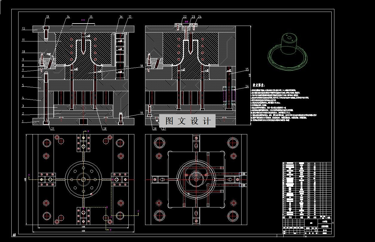饮水机聪明座注塑模具设计模具为一模一腔,直浇口结构,推杆脱模,本设计基于AUTOCAD二维绘制软件,借助UG等3d立体软件,对塑件进行了3D造型,并且完成了注塑模具中各个零件的设计,装配体上各零件的设计,同时还生成了塑料注射模具的成型零件,并且设计了浇注系统、冷却系统、模具模架等零件,最后进行了整个模具的装配。利用3D和cad相结合的模式,不仅可以直观的看到设计的模具的结构,并且可以有效的表达设计的设计理念。本资料含有模具装配图、模具三维、多张模具零件图