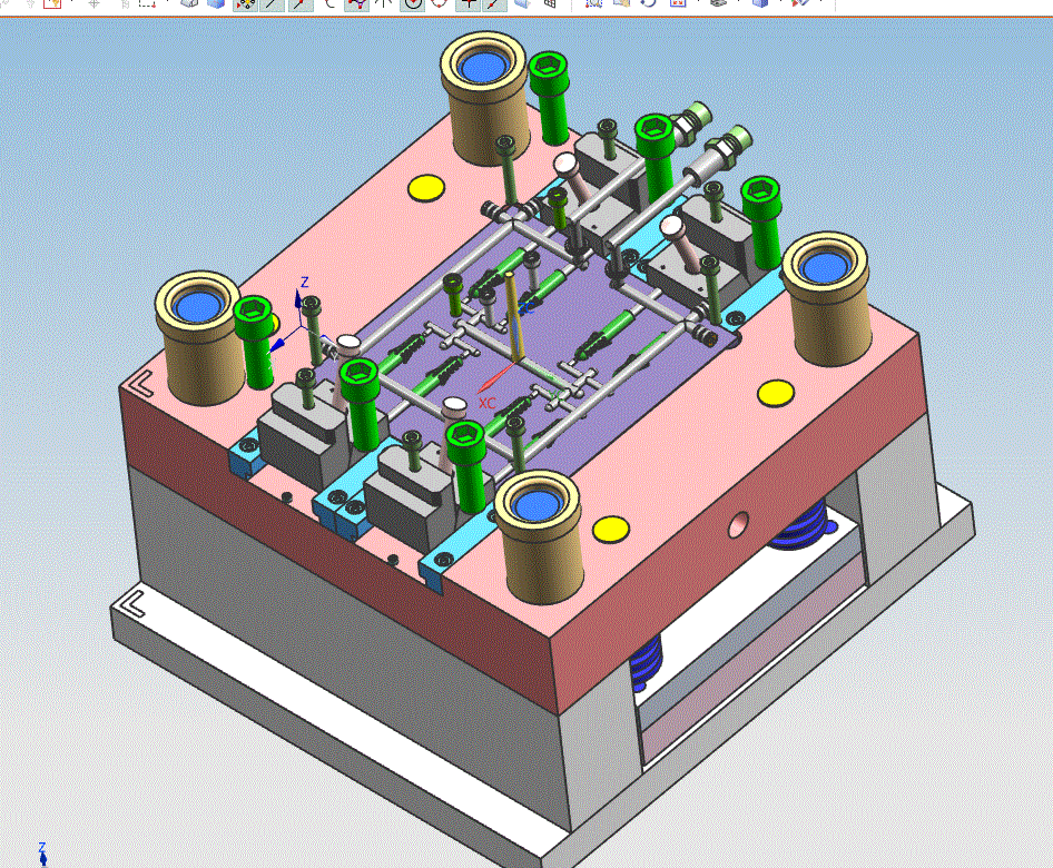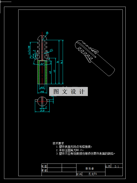 参考资料膨胀管塑料注射模具设计主题。为了满足大批量生产,模具为一模八腔,侧浇口,布置在膨胀管顶部,塑件内部中空结构采用斜导柱抽芯机构成型,推杆推出,本资料含有模具装配图、模具三维、产品零件图、产品三维、多张模具零件图