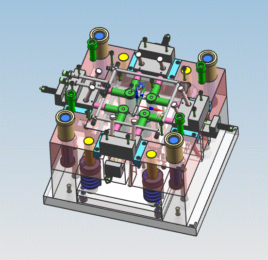 主要任务就是进行三通接口的塑料模具的设计,其中主要内容有分析三通接口结构形状和尺寸大小以及表面质量、尺寸精度要求,再加上制品的生产批量以及塑料原材料的工艺性能等因素,进行合理的模具结构设计。分析了产品体积完成了注塑设备的相关选型工作,所选注塑机型号为海天HTF86/TJ。其次,对分型面和模具的型腔排列进行了详细的设计,本次模具设计采用一模四腔结构,最后还围绕模具中关键结构依次进行了设计,比如浇注系统、脱模机构、合模导向机构、抽芯机构、模具冷却系统的设计。在整个塑料三通接口的模具毕业课题设计过程中,不仅多次请教了指导老师,同时还在网上和图书馆进行资料查阅,通过此毕业设计,对整个注塑模具设计过程从陌生到熟悉,也对塑料模具行业有了一个比较全面的认识。