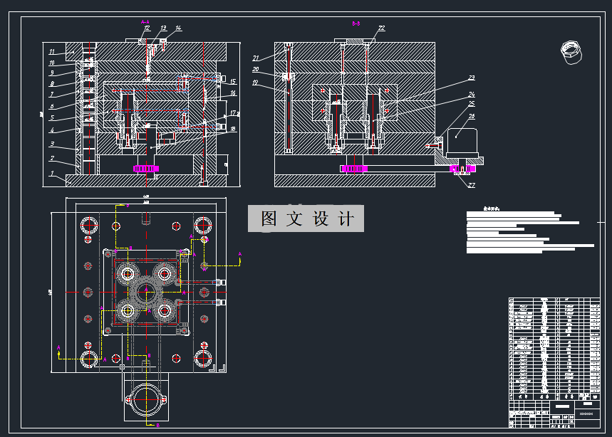绘制出了管接头产品三维图,通过分析它的外部结构形状结构和尺寸大小以及精度及表面粗糙度要求来拟定合理的模具设计方案,并对产品的塑料原材料进行了选择并作相关的性能分析,由于产品是不规则形状,体积只能通过三维软件分析获得,并初选了注塑机型号为HTF120J/TJ。本次设计分型面位置进在了产品底面最大轮廓面面积处,型腔数目决定采用一模四腔结构,型腔布局上采用H型排布,在浇口类型上选择了点浇口类型,由于产品内部存在内螺纹结构需要设计内螺纹自动脱模机构进行内螺纹成型和产品自动脱模,该处结构设计是本次设计的难点,最后经过分析,认为此次的塑料模具设计还需要设计一套模具冷却系统,这样能够提高产品的成型质量。最后对注塑机主要参数进行了校核。