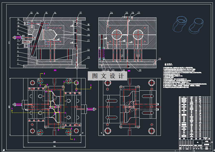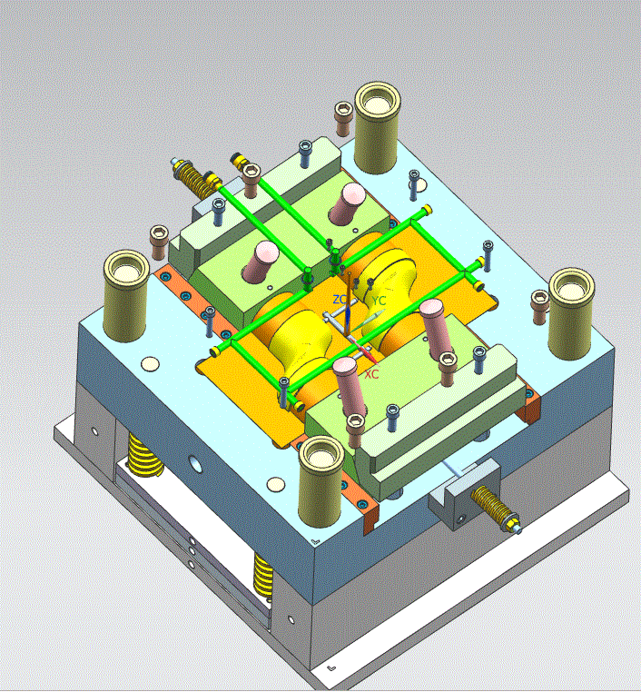 本次设计主要内容为成型罗技三脚架腿部支架设计一套塑料模具方案,在开展方案设计之前首先对罗技三脚架腿部支架结构做出了分析,然后根据其使用要求为罗技三脚架腿部支架选择合适的ABS材质,本次设计型腔数目为一模四腔的结构,本次设计中浇口形式采用了侧浇口进胶的方式,通过三维软件获得了产品体积,并对本次模具选定了型号注塑机及龙记标准CI模架型号。确定了模具最佳分型面位置,然后对主要的模具结构比如浇注系统、脱模机构、模具冷却系统进行详细的设计及计算。在成型零部件设计时,对成型零件的结构形式做出了选择并对成型零件的成型尺寸进行计算。最后对所选注塑机型号进行了校核。进而保证了设计的合理性及正规性。如此设计出的注射模结构才能确保模具工作运行可靠。