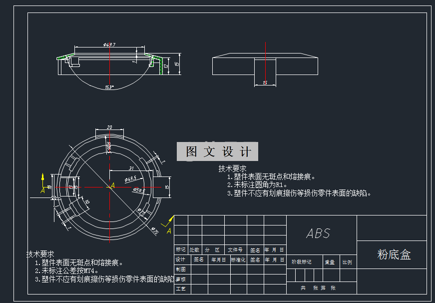 本文主要对成型气垫盒的注射模具内主要结构进行设计计算的过程进行了阐述,首先要从塑料生产工艺上对所要设计的产品进行工艺的分析与计算,然后在分析计算的基础上并参看相关的资料确定成型工艺方案,再在此基础上进入模具总装配图的结构设计。其材料为ABS。根据ABS塑料的工艺特性和产品的使用要求,分析了气垫盒的结构特点和成型工艺。并通过对塑件尺度的加工工艺分析,来明确注射成形的工艺参数、注塑机以及明确了模具的分型面,浇注系统,型腔数量和布置方式等设计。选择模架优先于选择标准模架。在分析和计算塑料零件的尺寸后,注塑机的型号为XS-ZY-125,并选择底面最大截面作为分型面。计算成型零件的型腔与型芯的尺寸,并设计。温度调节系统设计的是冷却系统。本设计使用侧浇口的方案,是由于要气垫盒要采用一模两腔。本次模具采用分型面和推杆缝隙排气而没有单独开设排气系统,脱模机构采用了推杆元件。综上所述来完成本次设计。