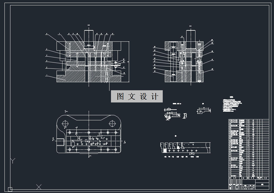 本次设计首先分析产品的工艺性能,按照拿到的设计工件图,从加工的角度对于工件进行工艺分析,基于对尺寸的大小,所用精度的高低,原材料的选择方面的分析结果。然后列出冲裁方案,确定本次零件加工的最佳方案是通过落料冲孔弯曲工序,使用落料冲孔弯曲级进模完成产品的冲压加工。尽可能做到所生产的工件用比较简单的模具,比较少的工序,生产费用适中,加工效率较高的情况下,获得保质保量的零件。进行相关工件的冲裁工艺计算和压力机的选择,然后对一些主要的零件进行计算与设计,组后完成整个装配图和零件图的绘制,并将这些过程写成说明书。