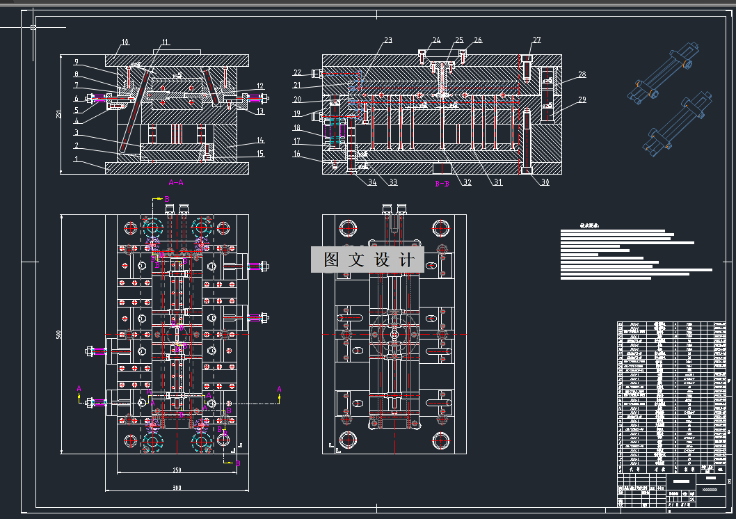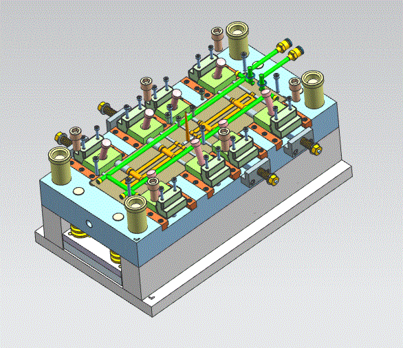 随着模具的制造和需求量也在逐渐提升,研究注塑成型模具设计是非常有意义的。本次毕业设计就是塑料模具相关课题,主要任务是根据任务书中要求为生产玩具栏杆设计一套塑料模具,在开始本次模具设计任务之前,首先分析了玩具栏杆的结构特点,以及所选ABS材料性能分析,通过以上分析,确定了分型面最佳位置以及一模两腔型腔数目及型腔排布,本次注塑模具成型选择了HTF86J/TJ型号注塑机,然后就可以展开模具具体结构设计,包括浇注系统,冷却及排气系统,脱模机构,导向机构,针对产品左右侧壁上各有一处侧凹机构成型,我们设计了侧向分型抽芯机构等机构设计,最后所选注塑机型号的重要参数进行校核。