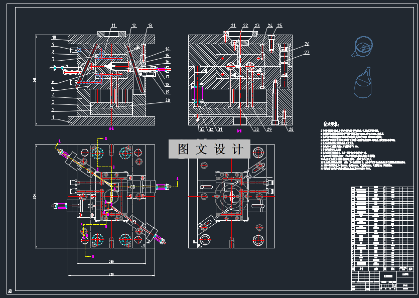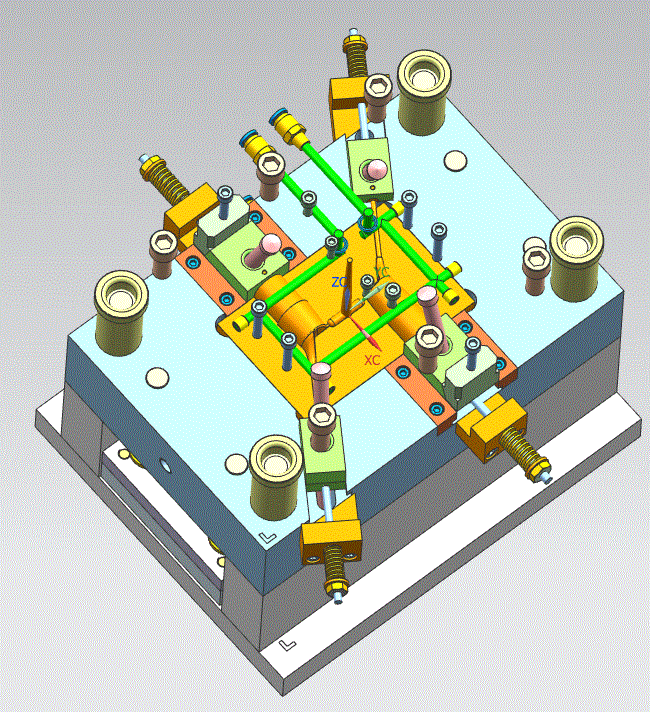 通过分析鼻炎药瓶喷头工艺性及其精确度的要求,对注射成形工艺技术作出合理的分析,而塑件尺度的成形制造性包括了塑件的壁厚、表面粗糙度及其尺寸准确度。并通过对塑件尺度的加工工艺分析,来明确注射成形的工艺参数、注塑机以及明确了模具的分型面,浇注系统,型腔数量和布置方式等设计。选择模架优先于选择标准模架。在分析和计算塑料零件的尺寸后,注塑机的型号为XS-ZY-125,并选择中间最大截面作为分型面。计算成型零件的型腔与型芯的尺寸,并设计。温度调节系统设计的是冷却系统。本设计使用侧浇口的方案,是由于要喷壶盖嘴要采用一模两腔。本次模具采用分型面和推杆缝隙排气而没有单独开设排气系统,脱模机构采用了推杆元件。综上所述来完成本次设计。