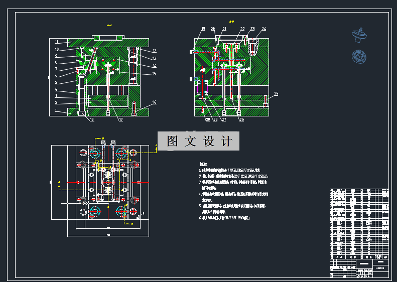 本文主要对成型鼠标滚轮的注射模具内主要结构进行设计计算的过程进行了阐述,通过分析鼠标滚轮工艺性及其精确度的要求,对注射成形工艺技术作出合理的分析,而塑件尺度的成形制造性包括了塑件的壁厚、表面粗糙度及其尺寸准确度。并通过对塑件尺度的加工工艺分析,来明确注射成形的工艺参数、注塑机以及明确了模具的分型面,浇注系统,型腔数量和布置方式等设计。选择模架优先于选择标准模架。在分析和计算塑料零件的尺寸后,注塑机的型号为东芝EC40-Y,并选择底面最大截面作为分型面。计算成型零件的型腔与型芯的尺寸,并设计。温度调节系统设计的是冷却系统。本设计使用侧浇口的方案,是由于要鼠标滚轮要采用一模两腔。本次模具采用分型面和推杆缝隙排气而没有单独开设排气系统,脱模机构采用了推管元件。综上所述来完成本次设计。