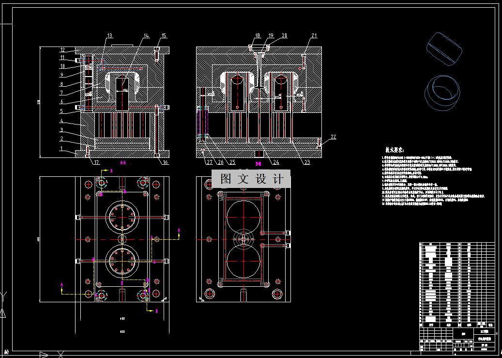 本设计介绍了注塑模设计的基本过程。包括对塑件结构的工艺性分析和使用材料的工艺性分析,在模具设计中,介绍了注塑机的选择方法,浇口,冷料口、排气槽等的设计,还详细介绍了型腔数量确定的方法,分型面、合模导向机构、脱模机构、冷却机构等的设计原则。通过此次设计,可以对注塑模的发展和设计方法有一个基本的认识,能注意到设计过程中的细节问题,了解模具结构和工作原理。