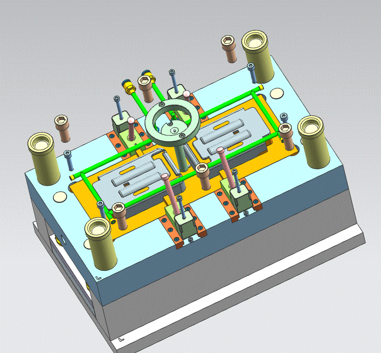 本次设计主要内容为成型槽板盒盖设计一套塑料模具方案,在开展方案设计之前首先对槽板盒盖结构做出了分析,然后根据其使用要求为槽板盒盖选择合适的ABS材质,本次设计型腔数目为一模两腔的结构,本次设计中浇口形式采用了侧浇口进胶的方式,通过UG软件分析获得了产品体积,并对本次模具选定了型号注塑机及龙记标准CI模架型号。确定了模具最佳分型面位置,然后对主要的模具结构比如浇注系统、脱模机构、模具冷却系统进行详细的设计及计算。在成型零部件设计时,对成型零件的结构形式做出了选择并对成型零件的成型尺寸进行计算。最后对所选注塑机型号进行了校核。在本次设计过程中,运用大学时期所掌握的UG和CAD计算机软件辅助设计,高效的完成了模具装配图和模具零件图的绘制,顺利的完成本次毕业设计任务。