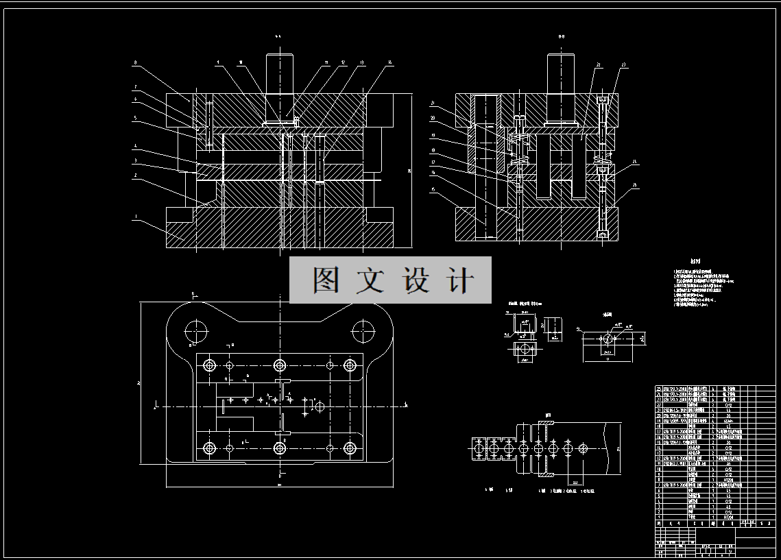 本次设计首先分析产品的工艺性能,按照拿到的毕业设计工件图,从加工的角度对于工件进行工艺分析,基于对尺寸的大小,所用精度的高低,原材料的选择方面的分析结果。然后列出冲裁方案,确定本次零件加工的最佳方案是通过落料冲孔弯曲工序,使用落料冲孔弯曲级进模完成产品的冲压加工。尽可能做到所生产的工件用比较简单的模具,比较少的工序,生产费用适中,加工效率较高的情况下,获得保质保量的零件。进行相关工件的冲裁工艺计算和压力机的选择,然后对一些主要的零件进行计算与设计,组后完成整个装配图和零件图的绘制,并将这些过程写成说明书。
