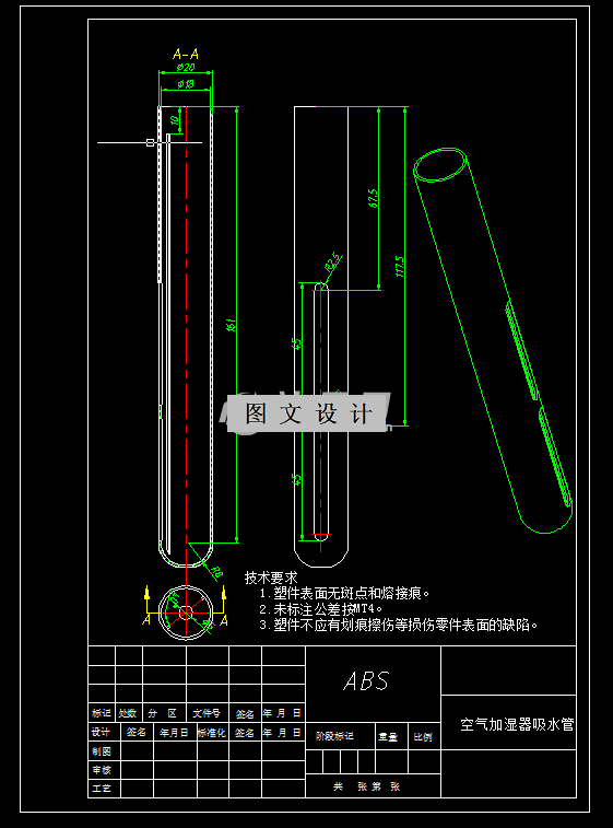 空气加湿器吸水管在我们生活日常生活中非常常见,它替代了之前的圆珠笔、钢笔成为中国用量最大的笔型。本次毕业设计书写课题就是空气加湿器吸水管的模具设计。开题之后,通过在网上查阅了大量的资料以及文献,最终确定了模具设计的整个方案,根据产品的使用要求选择了合适的材料。开题之后运用相关软件对产品进行三维建模,完成空气加湿器吸水管塑件的结构分析,然后确定了本次模具设计最佳分型面位置和模具型腔腔数为一模两腔哈弗模具机构,完成了本次设计的注塑模具浇注系统、侧向抽芯机构、脱模机构的设计,最后对模具的冷却系统等相关结构进行完善,这其中还对型芯型腔的结构尺寸进行了设计计算,确保整个模具设计过程的标准性与合理性。最终确定了零件的材料以及合适的工艺,最后完成整个模具的装配设计。通过对各个零件进行了二维图的绘制以及采用UG软件进行三维的建模,最后将整套模具顺利设计完成通过对空气加湿器吸水管注塑模具的设计。
