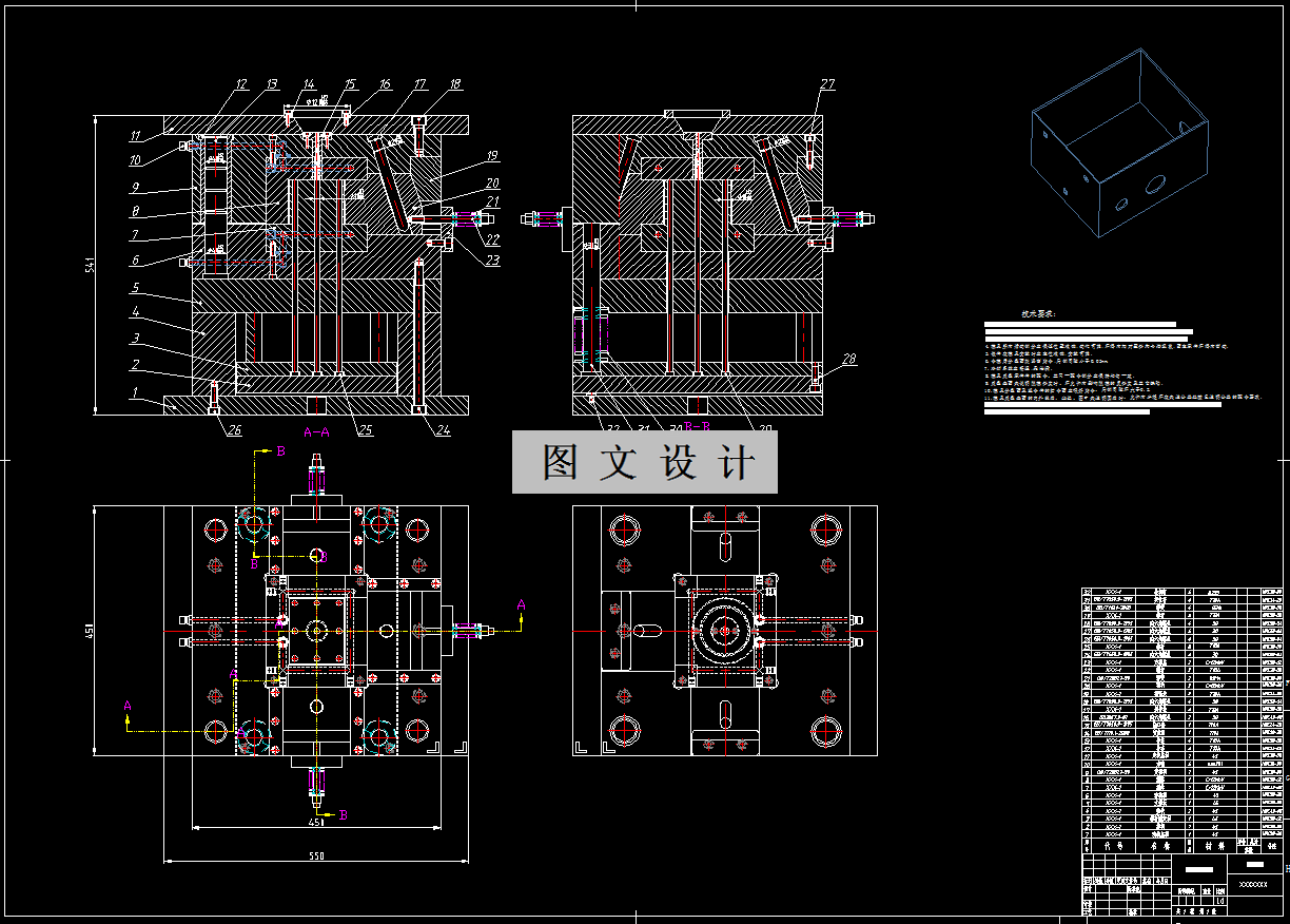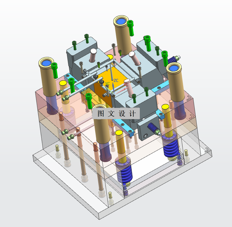 本次模具设计课题是研究100型过路盒模具成型方案的设计,主要做了以下内容,分析100型过路盒结构以及成型工艺性,为100型过路盒选择合适材料PVC,确定型腔数目为一模一腔方案,然后确定分型面位置,紧接着展开了浇注系统,脱模机构,抽芯机构,模具冷却调温系统的设计,然后为成型零部件结构形式进行选择,并计算成型零部件的主要尺寸,本次模具设计所选注塑机的型号为HTF250J/TJ,通过校核注塑机主要参数,验证所选型号注塑机满足要求,本次模具所采用的模架为AI模架。最后根据以上所设计的内容,通过所掌握的二维和三维软件完成了模具装配图、模具三维装配体以及模具零件图绘制。
