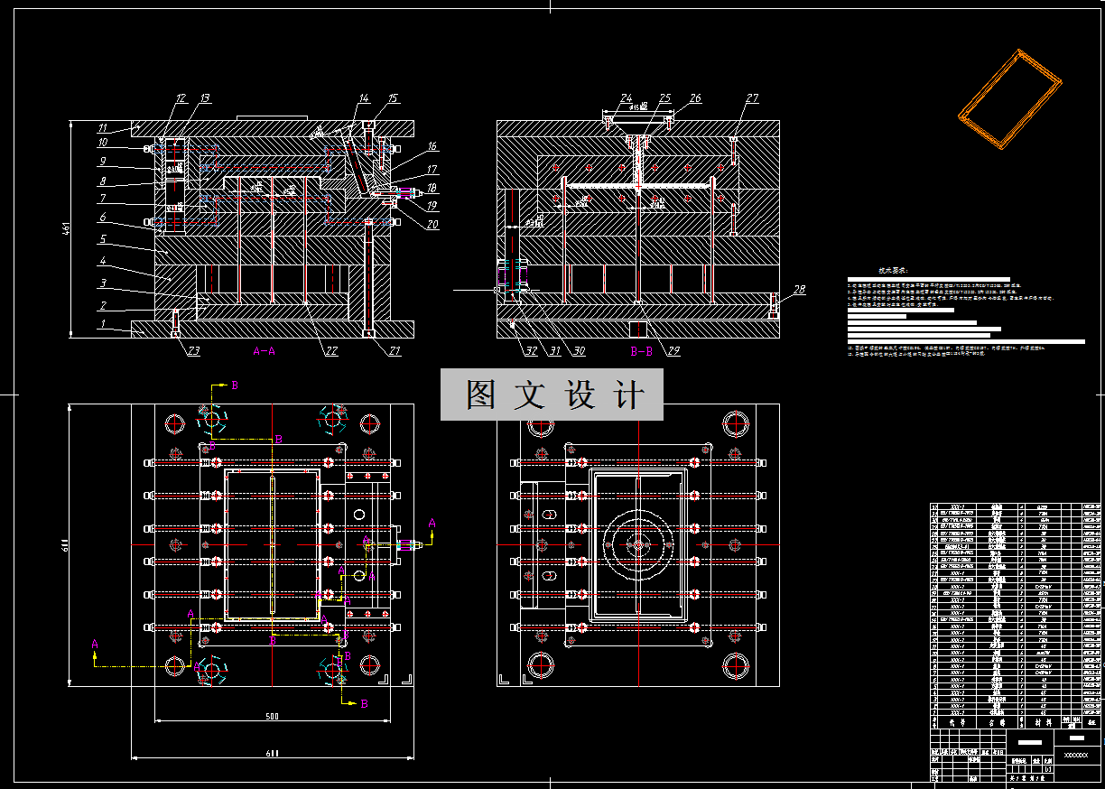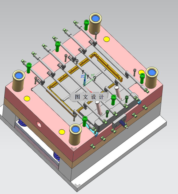 本文研究的是抽屉储物箱边框的注塑成型模具设计。通过多次在网上查找翻阅有关注塑模具国内外设计及发展的参考文献,对注塑模具结构、作用以及工作原理有所了解和掌握,在本次模具毕业设计中首先绘制出抽屉储物箱边框三维图,通过分析它结构复杂程度以及尺寸精度要求来设计合理的模具方案,接着对产品的塑料原材料进行了选择并做出分析,初选了注塑机型号为XS-ZY-250。型腔数目决定采用一模一腔结构,本次设计分型面位置选在了底面最大轮廓面处,在抽屉内框位置处设置侧浇口,本次设计的脱模机构选择了推杆脱模方式。产品上存在三处侧凹结构,是本次模具设计产品成型的难点,需要专门为成型模具产品侧凹结构设计抽芯机构,为了保证产品的成型质量缩短冷却成型时间为模具设计了合适的冷却系统,最后对注塑机几个主要参数进行了校核。