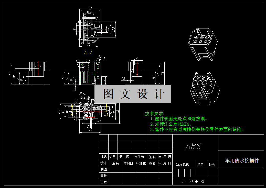 本次课题的目的是设计一副注射模具来生产车用防水接插件,从而实现大批量自动化生产。针对车用防水接插件的模具设计,经过查找资料且对此塑件进行结构与工艺分析,决定采用注射模。车用防水接插件采用ABS材料,该材料在日常生活中有着广泛的应用。此次设计从车用防水接插件的工艺性与相应的模具结构出发,对模具的成型零部件、注塑模推出机构、加热与冷却系统、浇注系统、排气系统、支承零部件的选择、注射机的选择以及相关参数的校核等都有着详细的计算过程。设计中主要运用PROE与CAD软件对车用防水接插件的三维模型与模具的装配图与零件图进行绘制,不但提高了工作效率且大大缩短了设计工作的时间,且加深了对软件的操作与运用。此次设计过程表明该模具能够达到车用防水接插件所要求的加工工艺。