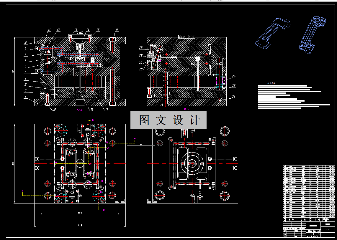 本次设计的内容就是进行座椅扶手注塑成型模具的设计,通过课堂上所学的模具理论知识为座椅扶手设计一副模具。本次设计模具方案型腔个数为一模两腔,进料通过侧浇口完成,注射所用设备为型号为XS-ZY-250,然后为注塑模具设计的浇注系统、脱模机构、侧向抽芯机构、温度调节系统、排气系统等。其中,浇注系统中包括有主流道、分流道、浇口等以及冷料穴等,脱模主要通过推杆推出座椅扶手来实现,设计了斜导柱+滑块作为本次设计的侧向抽芯机构装置。成型零部件部分的设计选择了整体式型芯、型腔并做出了相应尺寸的计算、通过文字,图纸与相关计算来对模具结构进行设计与计算,这样设计出符合要求的模具。