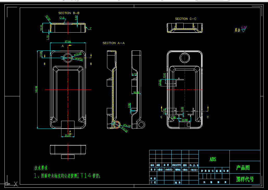 塑料是一种可塑性的合成高分子材料,具有重量轻且坚固,耐化学腐蚀, 电绝缘性好,价格便宜,可塑性好等特点,广泛应用于电脑、手机、汽车、电机、 电器、家电和通讯产品制造中。 注塑成形是成形塑件的主要方法之一, 是指使用注塑机将热塑性塑料熔体在 高压下注入到模具内经冷却固化获得产品的方法。注塑的优点是生产速度快,效 率高,操作可自动化,能成型形状复杂的零件,特别适合大量生产。 本次设计的产品为台灯底座,具有重量轻,强度高,耐腐蚀,易清洁等 特点,为大批量生产产品。本次设计在针对产品进行工艺性分析后,确定模具分 型面、 型腔数目、 浇口形式、 位置大小; 其中最重要的是确定型芯和型腔的结构, 以及它们的定位和紧固方式。此外还进行了脱模机构的设计,合模导向机构的设 计,冷却系统的设计等。最后绘制完整的模具装配总图和主要的模具零件图及编 制成型零部件的制造加工工艺过程卡片。实践证明:该模具结构合理、可靠,并 能保证产品质量,对此类注塑产品的模具设计有参考价值。