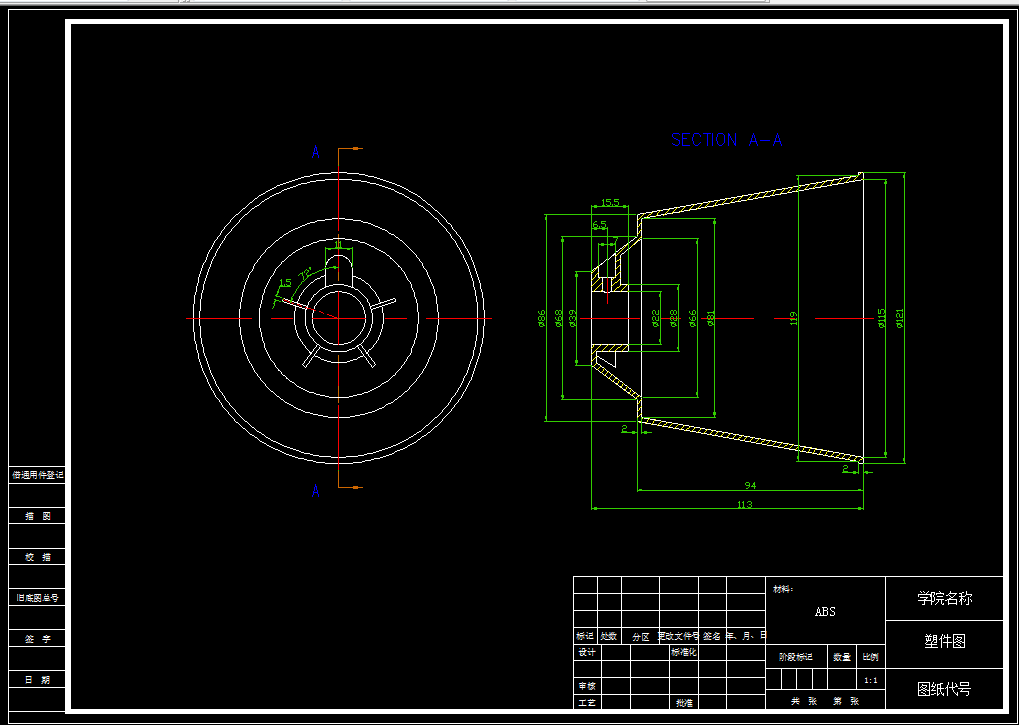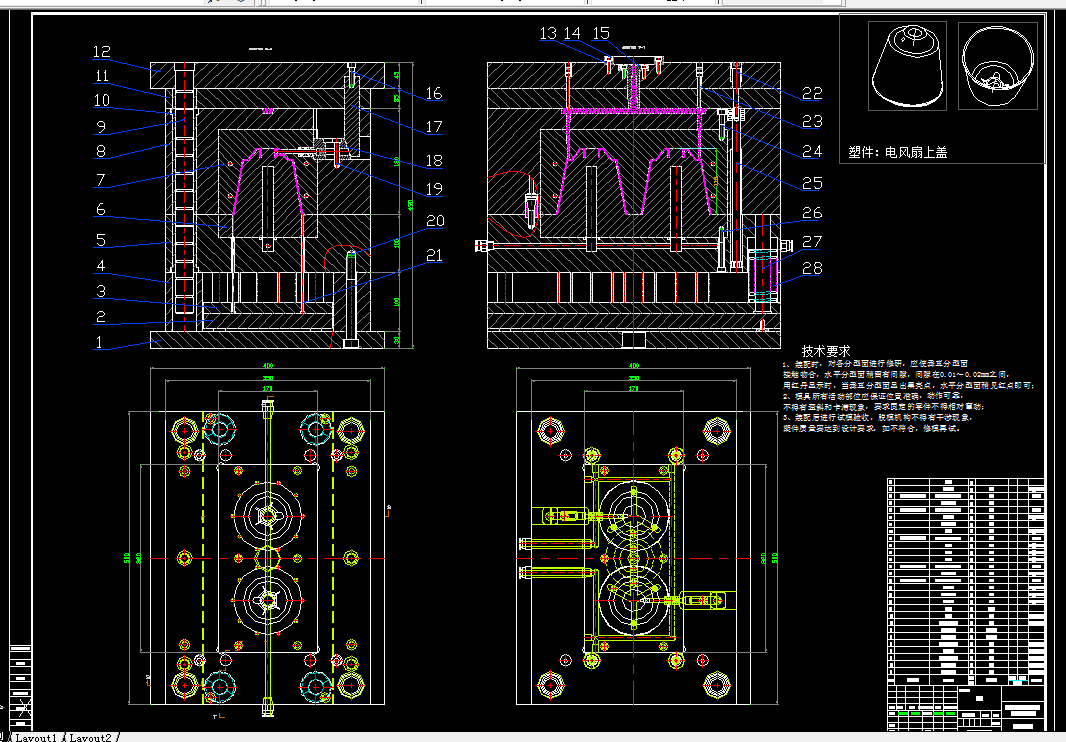 关键词: 电风扇上盖塑件;注塑工艺分析;三维建模;浇注系统;图纸绘制;