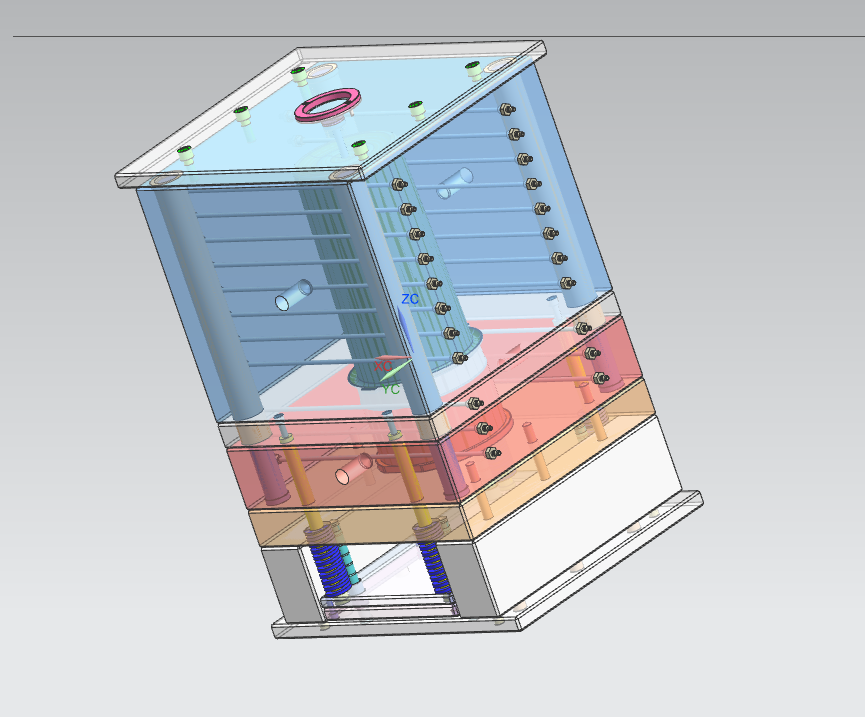 本文分析了水桶的成型特点,对模具结构各工艺参数,包括锁模力、流道截面尺寸等模具参数的进行了计算校核,设计了一副一模一腔、单分型面的,带有侧向分型与抽芯机构并且有很多小型芯所组成的侧浇口注射模具。该模具的关键是解决分型面的选择、侧型芯的结构、冷却系统的布局、塑件浇注系统布局等问题,以及在实现这个功能的情况下,如何使模具有效而可靠的运动。