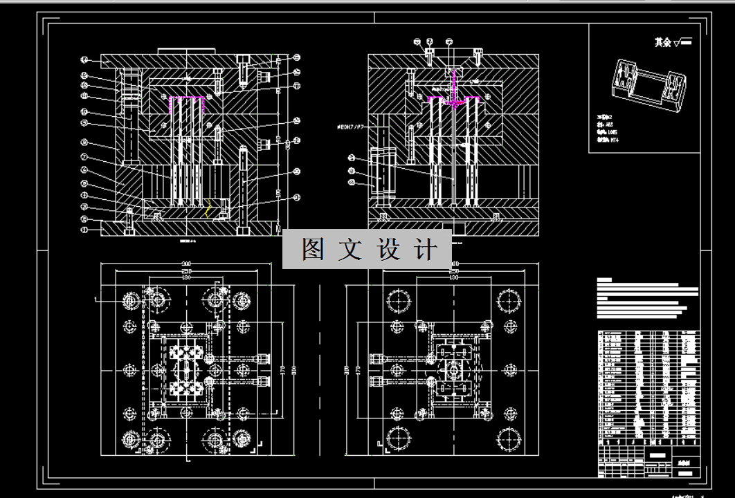 零件名为保险座塑料。在设计的时候,通过三维绘图软件Proe对本次设计的保险座塑料制品进行建模处理,通过建模,整个过程包括对塑件的结构分析,注塑机的选定,模具浇注系统及冷却系统的设计,模腔零件和运动机构等重要尺寸的校核与设计,为了塑件能获得更好的尺寸精度、以及外观质量和使用性能等要求都能满足塑件的实际使用要求,所以需要对模具的设计与制造加工方面都有对应的精度要求。 从模具加工方面来看,需要加工简单,制造及维修成本低;从模具使用角度来看,要操作方便,结实耐用,以及后续维修简便。所以在模具设计時,要综合到各方面的因素与考虑,最终拟定一个合理的设计方案。分析完成后,把该模具的各部分以及装配图通过CAD绘制成二维图,通过Proe绘制出模具的三维图,从而完成本次模具的设计。