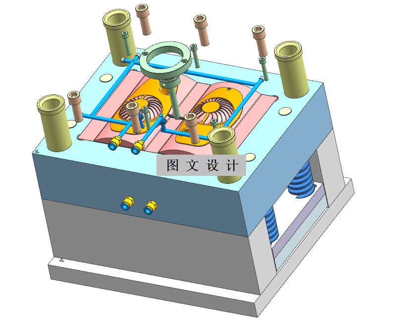 风扇后大身2009注塑模设计,一模两腔提升效率。侧浇口设计利于塑料填充,两板模结构简洁实用。推杆顶出结合斜推杆抽芯,确保复杂结构顺利脱模。整体设计兼顾生产效率与模具耐用性,满足风扇后大身的大批量生产需求,确保产品质量稳定。