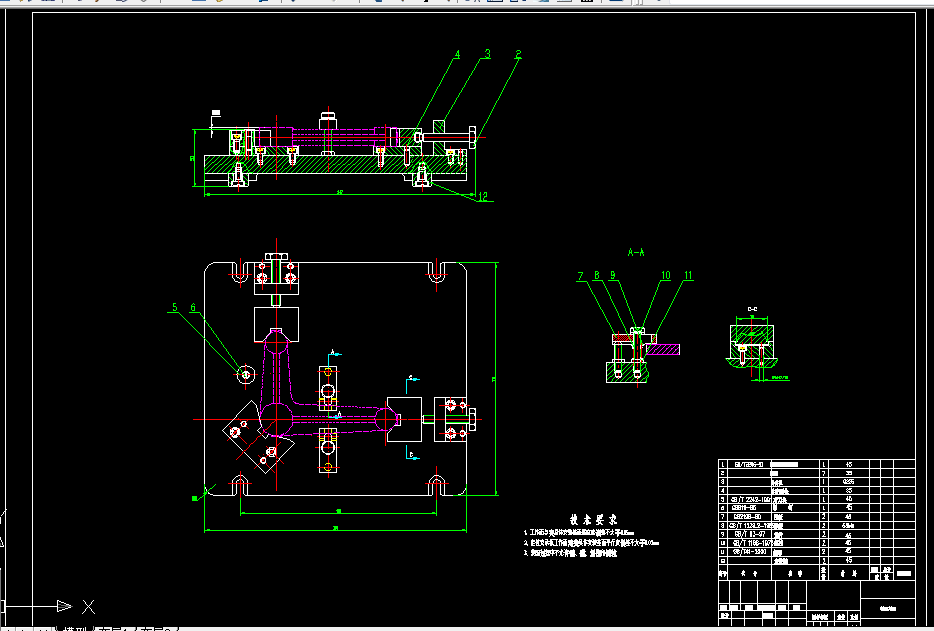 本设计是基于曲柄零件的加工工艺规程及一些工序的专用夹具设计。曲柄零件的主要加工表面是平面及孔系。一般来说,保证平面的加工精度要比保证孔系的加工精度容易。因此,本设计遵循先面后孔的原则。并将孔与平面的加工明确划分成粗加工和精加工阶段以保证孔系加工精度。基准选择以曲柄的输入轴和输出轴的支承孔作为粗基准,以顶面与两个工艺孔作为精基准。主要加工工序安排是先以支承孔系定位加工出顶平面,再以顶平面与支承孔系定位加工出工艺孔。在后续工序中除个别工序外均用顶平面和工艺孔定位加工其他孔系与平面。支承孔系的加工采用的是坐标法镗孔。整个加工过程均选用组合机床。