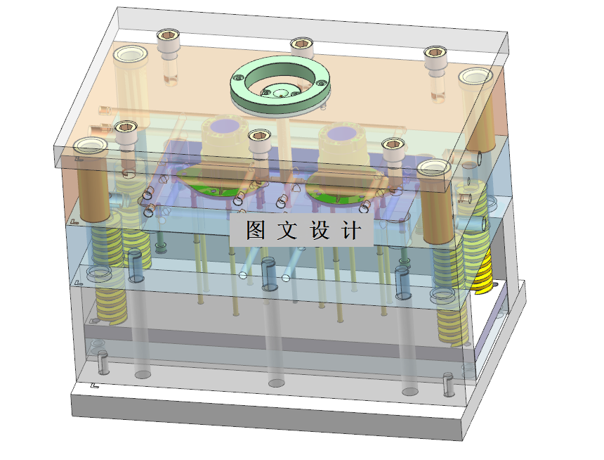 升降器塑料支座注射模具采用一模两腔结构,两板模设计简洁高效,配备推杆顶出系统以平稳脱模。侧浇口设计促进塑料均匀填充,减少缺陷。整体设计平衡了制造难度、塑件质量和生产效率,确保产品符合要求,提高生产效率。