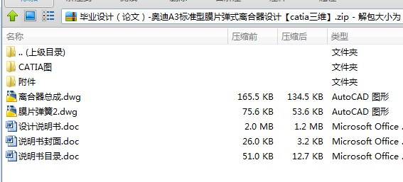 离合器设计的内容主要包括压盘总成、从动盘总成、摩擦片、膜片弹簧四个部分。首先,对离合器各零件的参数、尺寸、材料、及结构进行设计,然后使用CATIA软件画出推式膜片弹簧的装配及零件的三维图形,最后转为Auto CAD工程图。