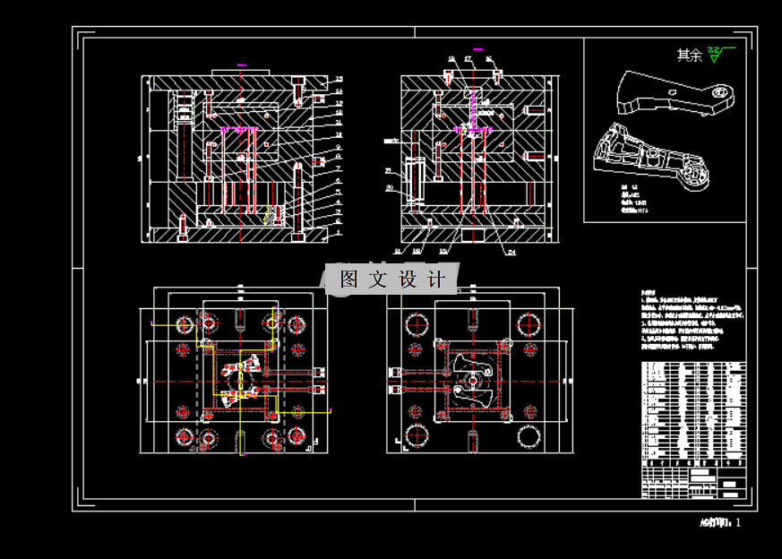 摄像机摇臂注塑模具设计,采用一模两腔结构,侧浇口设计保证填充均匀。两板模结构简化操作,推杆顶出机构确保产品顺利脱模。整体设计高效稳定,满足摄像机摇臂对尺寸精度和外观质量的要求,提升生产效率。
