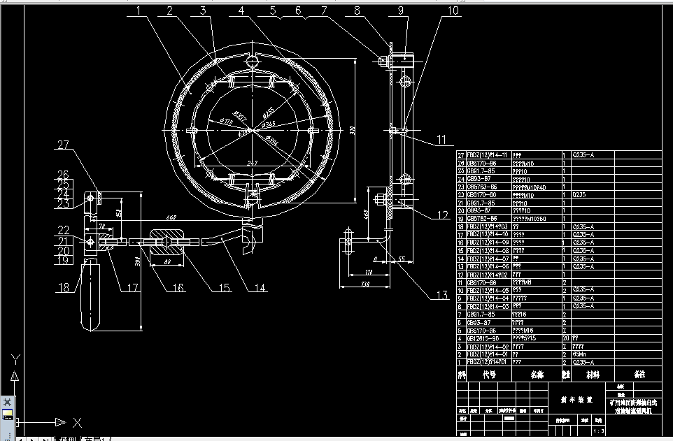 本文主要介绍FBDCZNo12型轴流风机的工作原理、主要零部件的结构设计、三维实体建模及一些主要零部件的选择及校核计算。本文第一章对轴流风机进行了简单介绍,介绍了轴流通风机的工作原理及国内、国外的发展趋势;第二章阐述了轴流通风机的总体设计和结构设计方案;第三章主要介绍轴流通风机的结构设计及相关零件的设计计算;第四章详细介绍了运用Pro/E软件对轴流通风机的典型零件的三维设计建模,装配和仿真的过程,运用Pro/E软件对轴流通风机进行计算机的辅设计,可以对系统的整体布局,结构的合理性进行判断及评价,还可以方便的对零件尺寸、形状进行修改;第五章对部分零件进行了校核计算。
