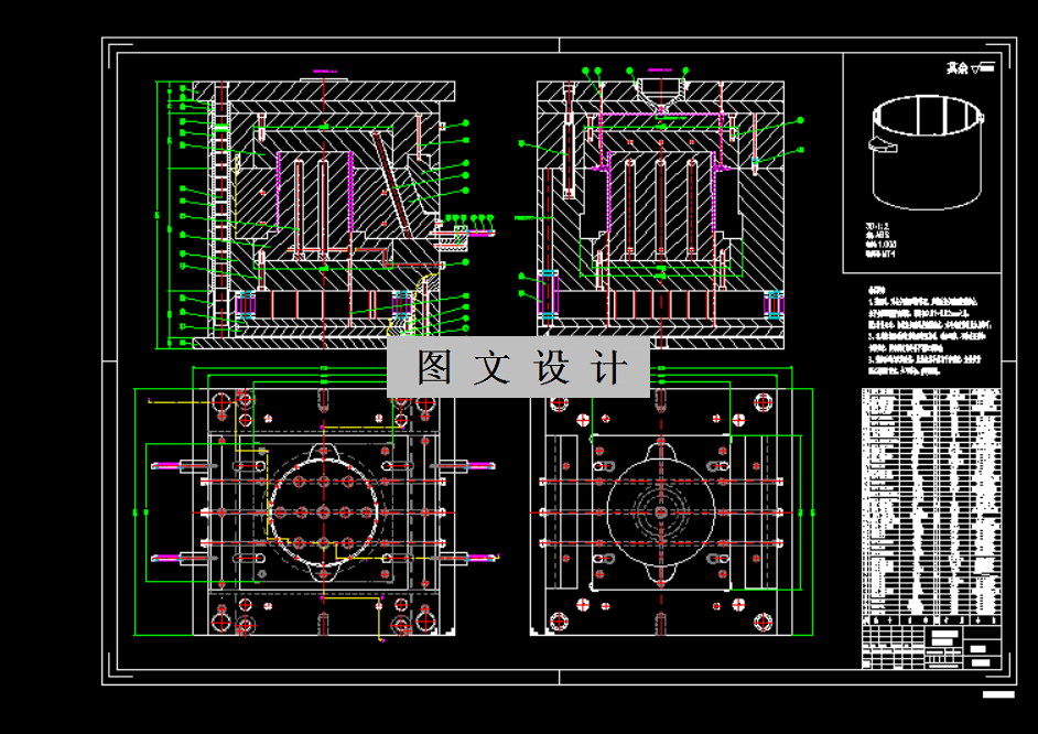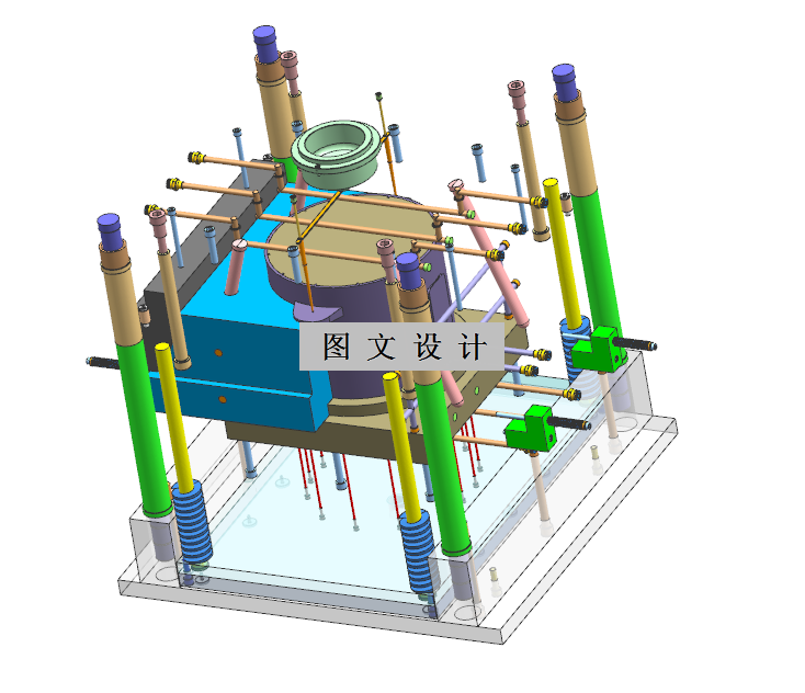 电饭煲外壳注塑模具设计,采用一模一腔结构,两边斜导柱滑块抽芯处理复杂结构,侧浇口设计优化填充。两板模结构简化操作,推杆顶出确保外壳完整脱模。整体设计注重耐用性与精度,满足电饭煲外壳对尺寸稳定性和外观的高要求,提升生产效率。