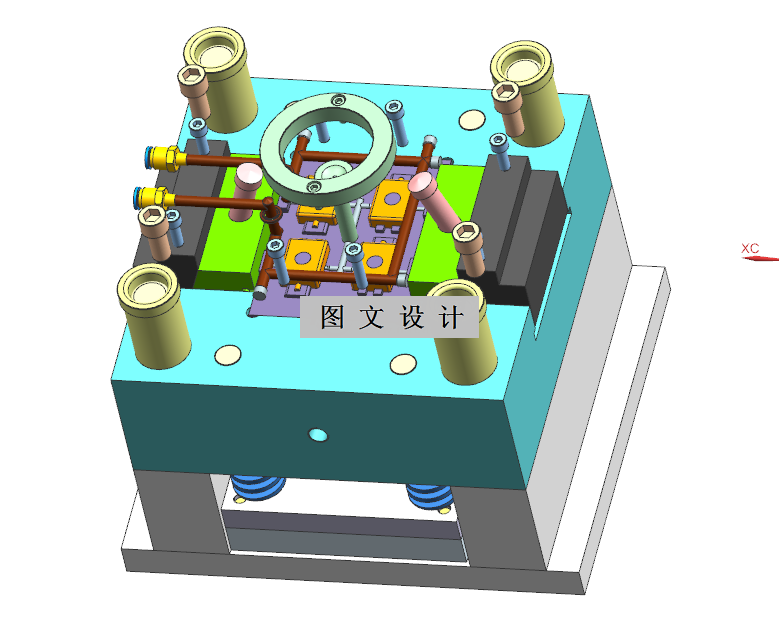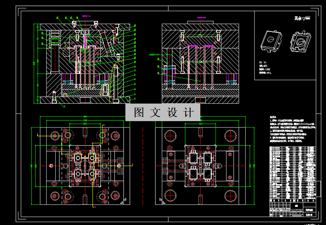控制器底座注塑模具设计采用一模四腔结构,提高生产效率。侧浇口设计优化填充过程,斜导柱滑块抽芯机构解决复杂结构脱模难题。推杆顶出机构确保底座平稳脱模,整体设计注重精度与耐用性,满足控制器底座对尺寸稳定性和结构强度的要求。