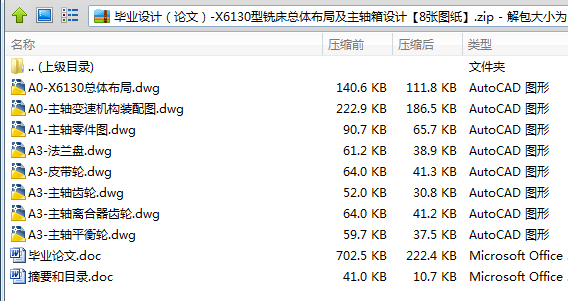 本设计介绍了铣床及X6130型万能卧式铣床的一些基本知识,主要对X6130的主轴变速传动机构和外观总体布局进行了设计。主轴变速箱是变速机构实现的场所,变速箱中的各传动轴上有不同齿数和模数的齿轮,它们通过相互啮合将前者的速度传递给后者,并且由于齿轮参数的不同而使速度在传递过程中产生变化。X6130型铣床,主轴箱能实现12级变速,机床主电动机功率是4KW,额定转速1440r/min,主轴最高转速1600r/min,最低转速35r/min,机床的进给是通过升降台纵向或者横向运动实现的;本着优化、美观、实用和不浪费的原则,X6130型铣床总体布局合理,外观简洁,床身协调;本设计还根据需要对一些设计进行了校核,主要是对主轴箱的传动轴以及轴上的零部件(如齿轮、轴承等)进行了验算,这样就使本设计更加合理、实用。