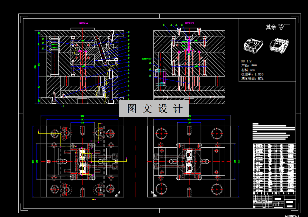 轿车锁盖注塑模具设计,采用一模两腔布局,侧浇口设计确保注塑效率。模具结构为两板模,便于操作与维护。斜导柱滑块抽芯机构灵活,有效解决复杂结构脱模难题。推杆顶出系统稳定可靠,保证产品完整脱模。整体设计提升生产效率,确保轿车锁盖质量,满足汽车行业高标准需求。