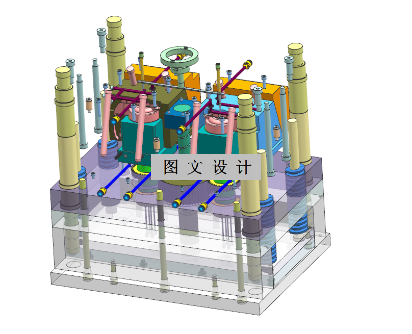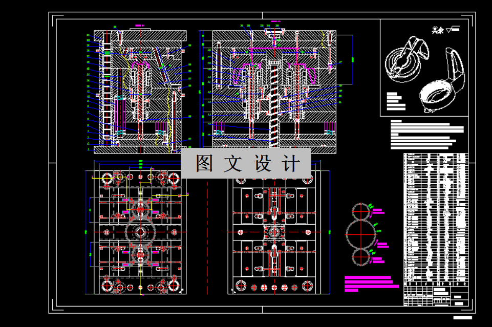 塑料杯盖模具设计,带手柄,一模两腔提升效率。采用三板模点浇口,多次分型确保精度。斜导柱滑块先抽芯,处理复杂结构。特色螺纹抽芯设计,实现自动脱螺纹,操作便捷。整体设计科学合理,满足塑料杯盖注塑需求,确保产品质量,提升生产效率,降低成本。