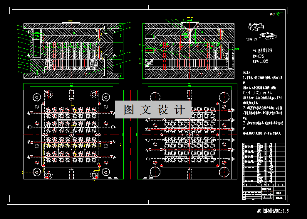 塑料带字方块注塑模具设计,一模64腔高效生产,满足大批量需求。采用两板模结构,侧浇口设计确保注塑均匀。推杆顶出机构,保证产品顺利脱模。模流分析优化注塑流程,提升产品质量。整体设计精密,满足塑料带字方块的高品质、高效率生产需求。