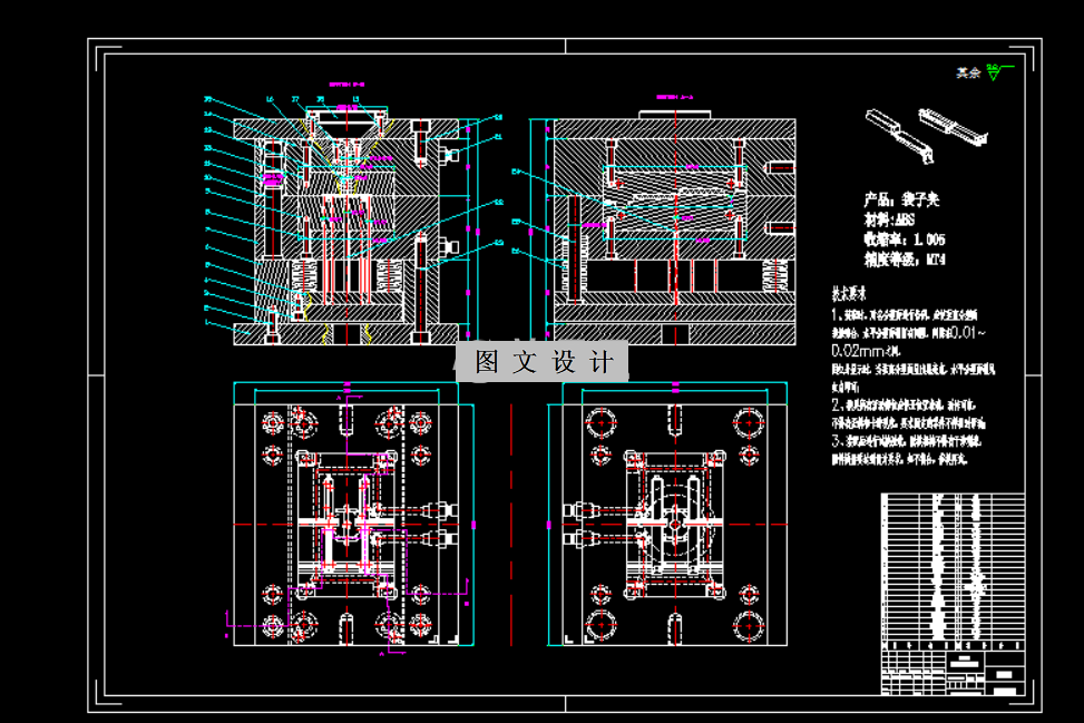 袋子夹注塑模具设计采用一模两腔布局,侧浇口设计利于熔融塑料均匀填充。模具结构为两板模,简化操作流程。推杆顶出机构确保成品顺利脱模,保持外观完整。此设计提高生产效率,适用于袋子夹的大规模生产。