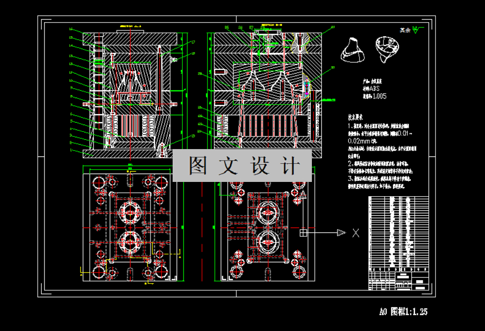 台灯底座注塑模具设计采用一模两腔、三板模结构,点浇口设计,实现多次分型。模具中运用了斜推杆抽芯技术,确保塑件成型完整且易于脱模。同时,采用推杆顶出方式,保证塑件在模具开启时能顺利推出,不损伤塑件表面。此设计综合考虑了生产效率与塑件质量,适用于大批量生产,有效提升了生产效率和产品质量。