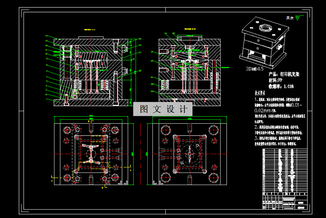 打印机支架塑料模具设计,选用一模两腔结构以提升生产效率,侧浇口设计保证塑料流动顺畅。模具采用两板模结构,结构简洁且操作方便。配备推杆顶出机构,确保支架稳定脱模。整体设计满足打印机支架的强度和稳定性要求,为高质量打印提供稳固支撑。