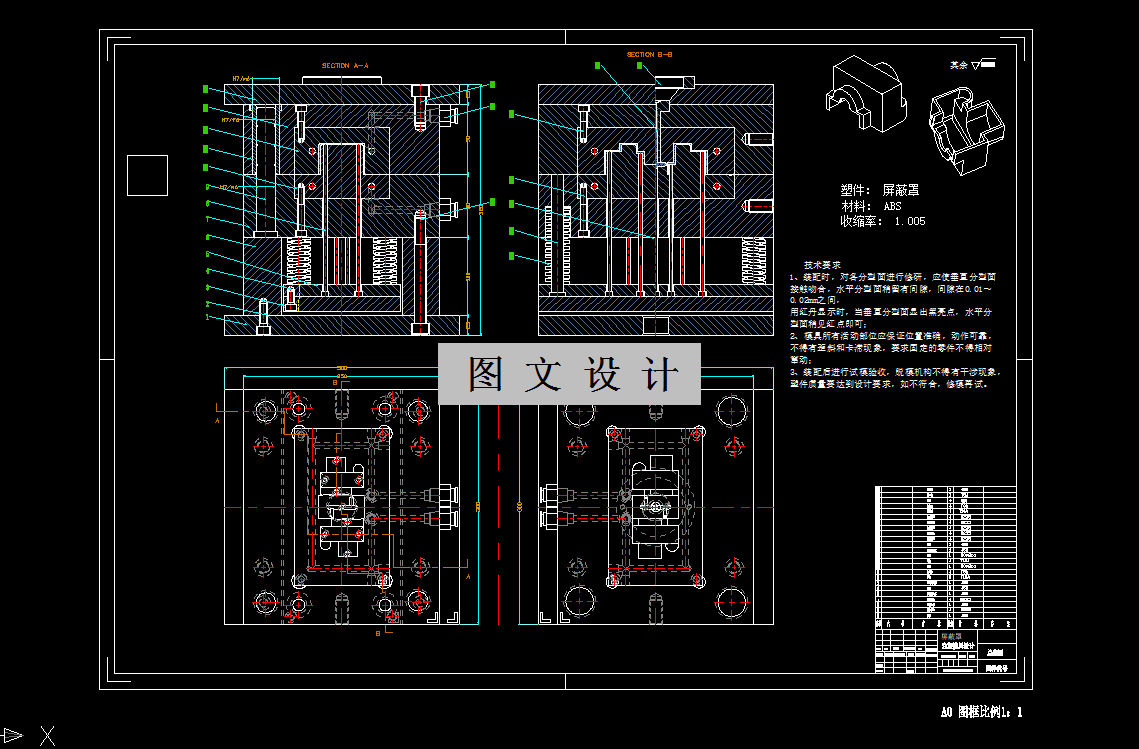 屏蔽罩注塑模具设计,选用一模两腔布局,侧浇口设计保证注塑流畅。采用两板模结构,简化模具操作。顶出系统配置推杆,确保产品顺利脱模。整体设计高效稳定,适用于批量生产,提升生产效率。