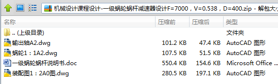 B892-一级蜗轮蜗杆减速器设计F=7000,V=0.538,D=400 下载积分:50 资料编号: B892